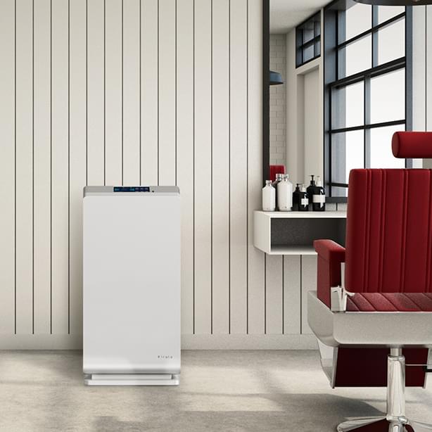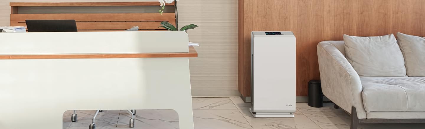 Kirala Airから放出されたオゾンは、360°方向に広く拡散され、わずかな隙間にも入り込んで室内空間の隅々まできめ細かく除菌。空気中に漂う浮遊菌はもちろん、日常生活の中で人やペットが直接触れるドアノブや家具に付着した、最長72時間も残留するウイルスや細菌、さらに気になる生活臭なども元から除去します。Ariaの場合、約20畳の部屋を1時間で99%以上除菌することができます。
